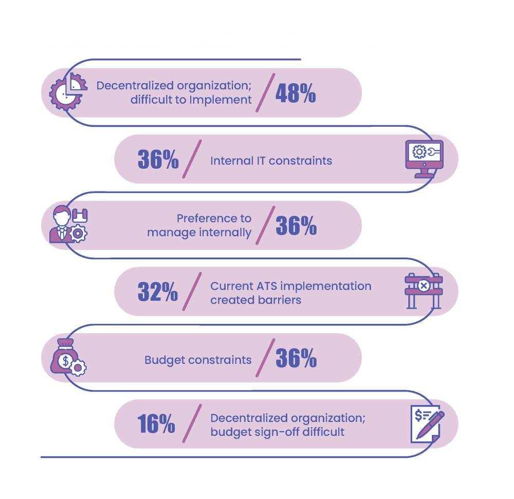 Among organizations that manage their TA platforms in house, nearly half (48%) are using two to three solutions, while 40% use four or more. No wonder teams are plagued by information overload, high cost, and poor integration!