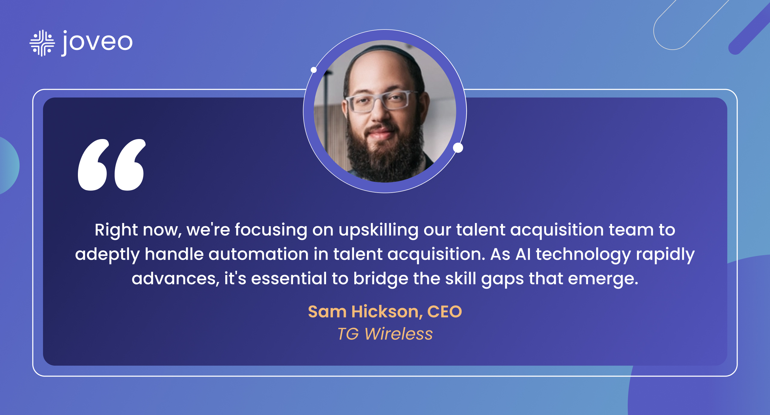 Right now, we’re focusing on upskilling our talent acquisition team to adeptly handle automation in talent acquisition. As AI technology rapidly advances, it’s essential to bridge the skill gaps that emerge and learn how to leverage AI-powered tools to automate our internal processes. In our experience, many aspects of the recruitment process can be significantly streamlined by these technological advancements, including the screening of resumes and the coordination of interview schedules.