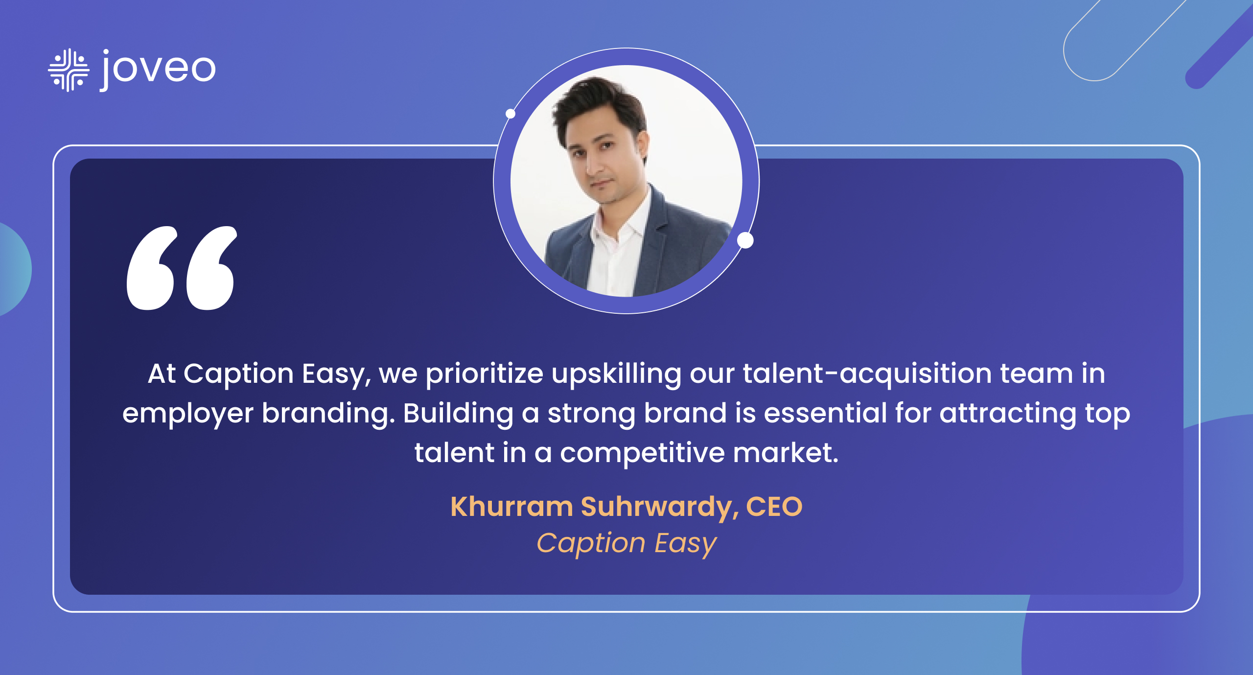 At Caption Easy, we prioritize upskilling our talent-acquisition team in employer branding. Building a strong brand is essential for attracting top talent in a competitive market. For instance, enhancing our online presence and showcasing our company culture has significantly improved candidate engagement and application rates, ensuring we draw in the right fit for our roles.
