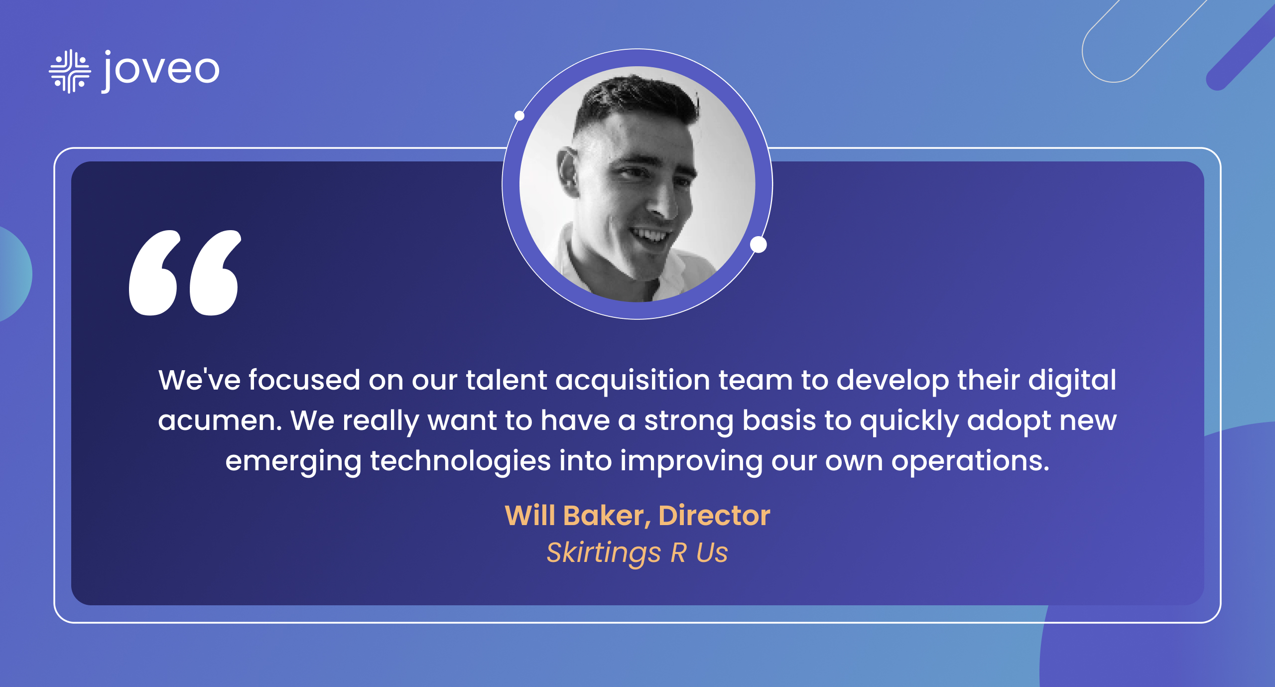 We’ve focused on our talent acquisition team to develop their digital acumen. We really want to have a strong basis to quickly adopt new emerging technologies into improving our own operations. This translates into hiring the kind of people that can introduce these new methods of working to our business. It’s a skill we focus on heavily during recruiting, which is why it’s necessary that our talent acquisition team can screen for it. One way we do this is by providing them with free subscriptions to different tech publications, encouraging them to attend tech-focused conferences, and supporting them in implementing these kinds of improvements in their own department.