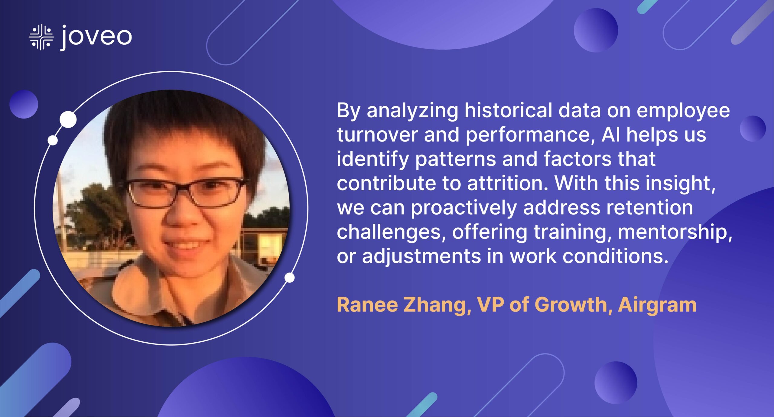 We use AI for predictive analytics in retention. By analyzing historical data on employee turnover and performance, AI helps us identify patterns and factors that contribute to attrition. With this insight, we can proactively address retention challenges, offering training, mentorship, or adjustments in work conditions. This data-driven approach not only aids in retaining valuable talent but also contributes to a more stable and productive workforce.
