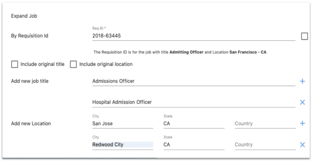 Job ad expansions offer one of the most effective ways to amplify the reach of your recruitment advertising campaigns to relevant audiences. Expansions make it possible for you to advertise a job simultaneously to multiple locations, and/or explore alternative job titles to identify which ones resonate better with a larger audience. By expanding the reach of your ads to more relevant candidates, you increase your chances of converting them to applicants without increasing your spend significantly, therefore cutting down on your CPA (and by extension, your CPH). There are two ways to expand a job ad: