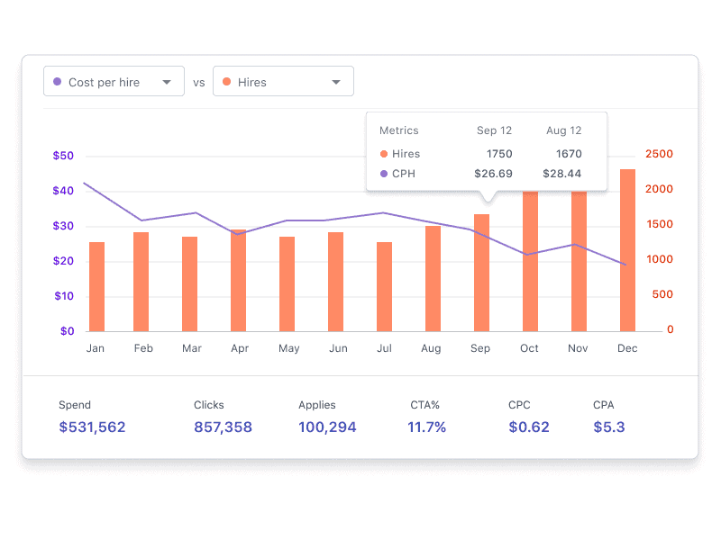 Fortunately, the relevance (or quality) of job seekers you attract with your job ads plays a huge role in how much you end up spending to acquire hires. If your recruitment advertising campaigns are optimized to show the right job ads to the most relevant candidates, it gives you the best chance to reduce your CPH. In other words, you won’t waste your budget attracting candidates that don’t convert to applicants or hires.