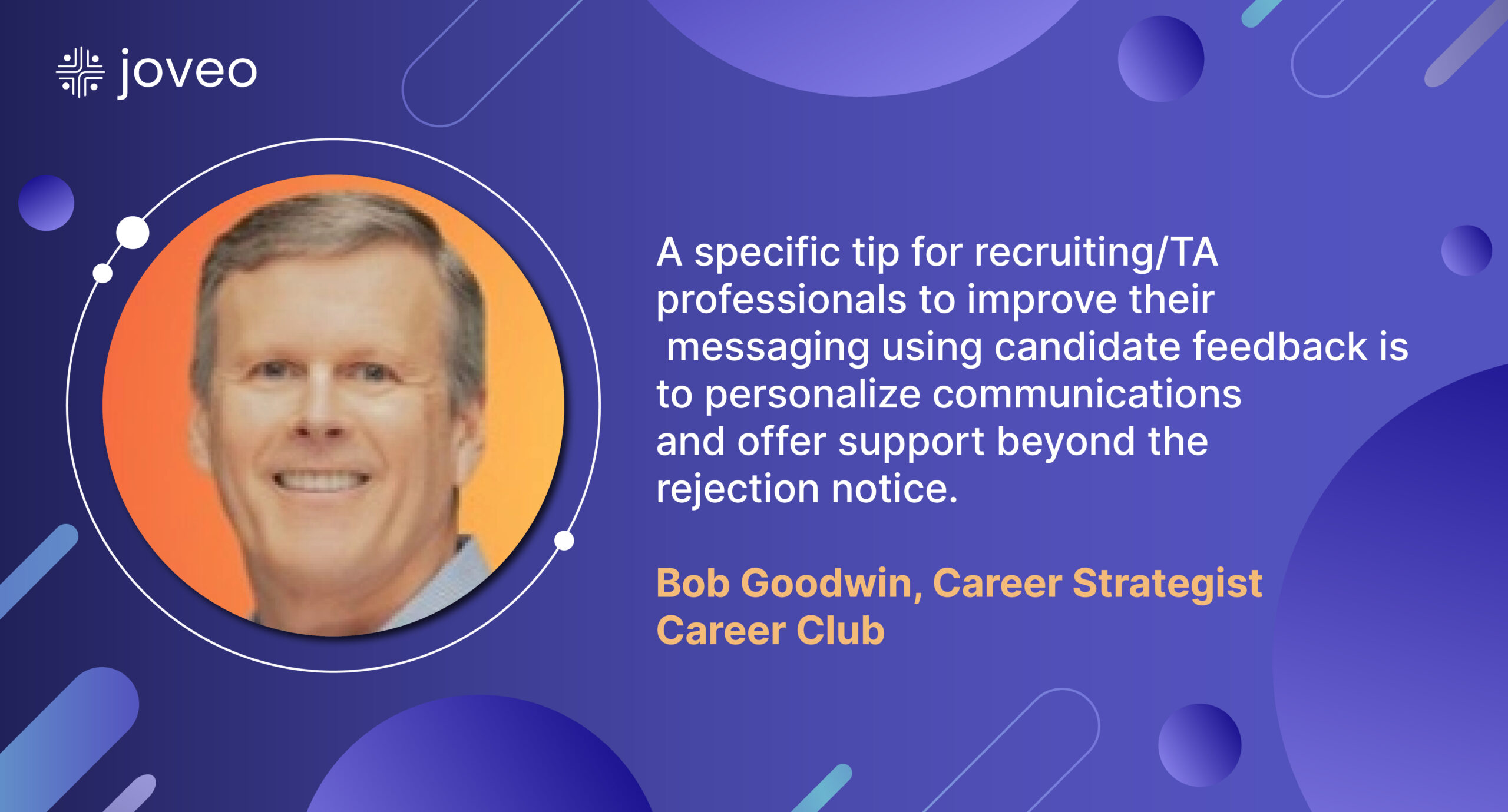 A specific tip for recruiting/TA professionals to improve their messaging using candidate feedback is to personalize communications and offer support beyond the rejection notice. This could include providing feedback on the candidate’s application, offering access to resources or networking opportunities, and encouraging them to reapply for future roles.