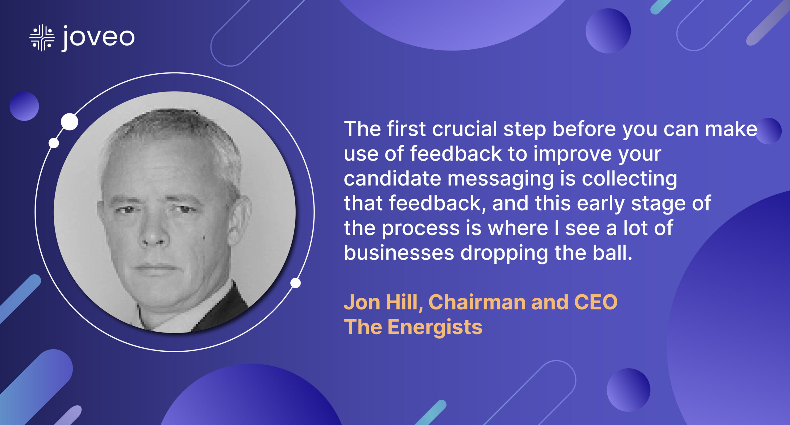 The first crucial step before you can make use of feedback to improve your candidate messaging is collecting that feedback, and this early stage of the process is where I see a lot of businesses dropping the ball. Often, there is no communication with rejected candidates after they’ve been informed that they’re not moving forward in the process—and, sometimes, this isn’t even communicated to the candidates directly. The vast majority of job seekers are not going to send you feedback unprompted, so if you want to gather this kind of information, you need to ask for it.