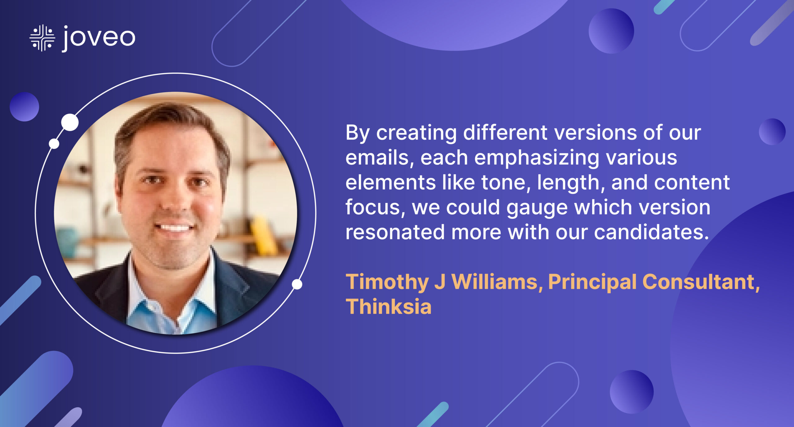 To further improve our messaging, we adopted an A/B testing approach, treating email communication as a marketing campaign. By creating different versions of our emails, each emphasizing various elements like tone, length, and content focus, we could gauge which version resonated more with our candidates. This method provided us with concrete data on candidate preferences, allowing us to continuously refine our approach. For example, we found that emails that directly addressed potential growth opportunities and outlined clear next steps in the application process received a higher engagement rate.