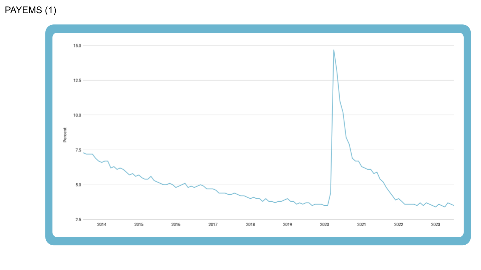 In summary, the US labor market showcased resilience in Q2 2023. With steady job growth averaging 244,000 new positions each month and a total of 1.6 million jobs added in the first half of the year, the labor market remains a key driver of economic expansion. The unemployment rate stayed impressively low, dipping to 3.4% and then 3.6% in June.